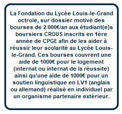 “Grâce à la FLLG, les étudiants de nos classes préparatoires ont la possibilité de suivre des stages de mise à niveau en langues tout au long de leur cursus en prépa. C’est une véritable chance pour eux comme pour nous, qui en tirons de grands bénéfices sur le plan pédagogique et humain. Tout est toujours pensé en étroite collaboration avec les professeurs, du contenu des stages, qui sont élaborés conjointement avec des organismes ou institutions de grande qualité tels que OISE, au choix des étudiants susceptibles de bénéficier d’une bourse pour ces stages et sans laquelle ils n’auraient pas les moyens financiers d’y participer. L’équipe de la FLLG est, en effet, toujours présente pour tous et se montre très investie dans la vie des élèves et de l’établissement. Elle fournit une aide qui va bien au-delà de l’attribution de bourses. Merci de permettre à nos étudiants de participer à ces séjours ! ”
